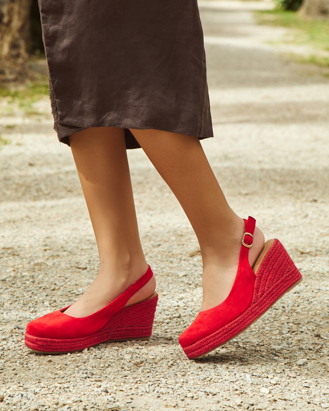 - Cuñas de mujer color rojo.
