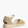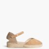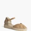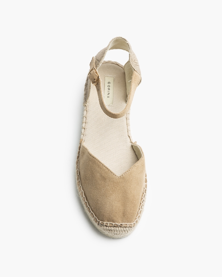 Esta alpargata destaca por su punta cerrada en acabado tipo ante y su talón trenzado de estilo artesanal, que junto a la clásica suela de yute le aporta un aire mediterráneo muy actual. La pulsera ajustable con hebilla en el tobillo asegura una sujeción cómoda y estable durante todo el día.