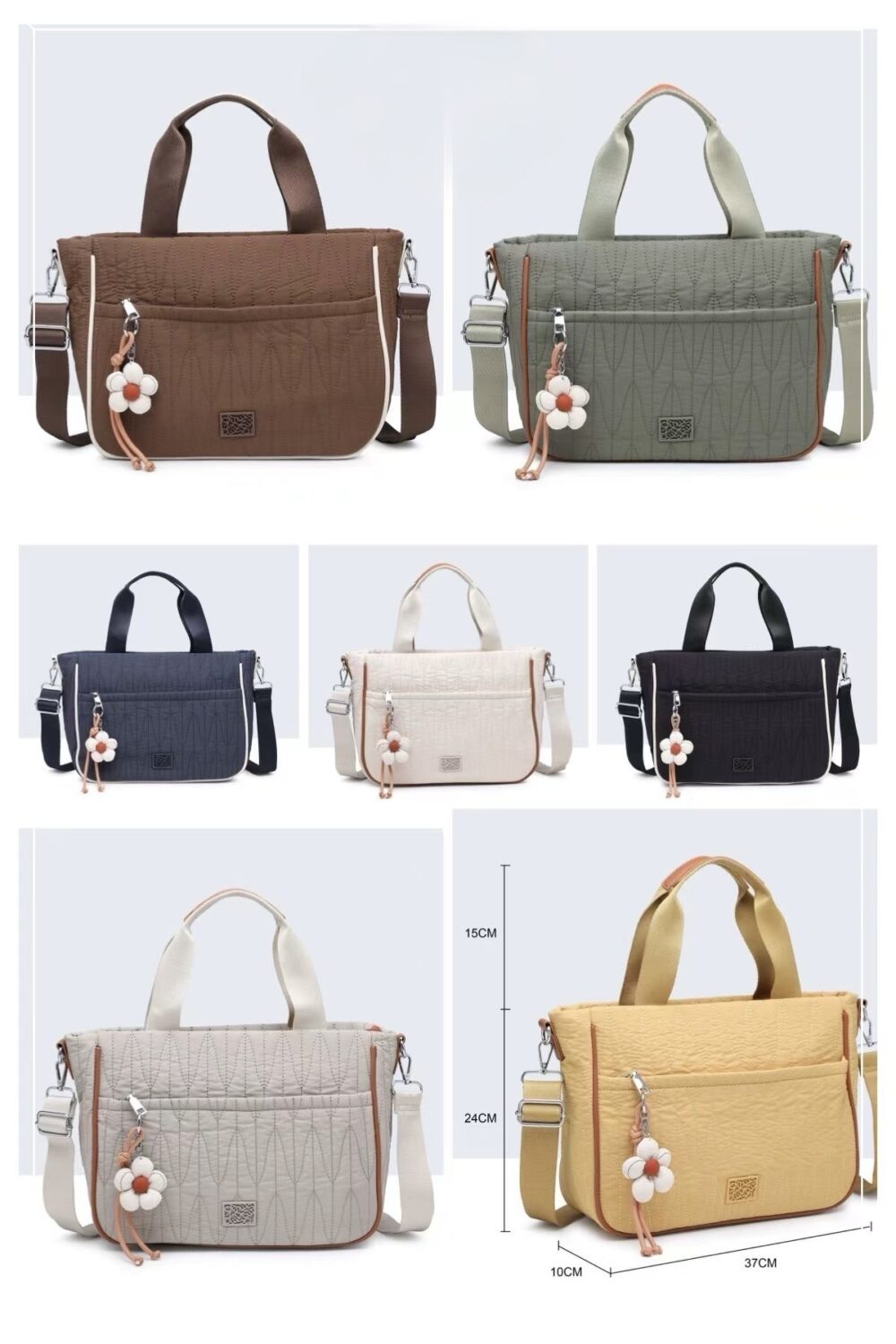 Incluye tira larga regulable y desmontable.