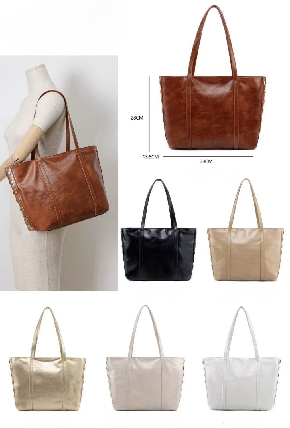 - 🎨 Disponible en varios colores: marrón cuero, negro, beige, dorado, taupe y blanco.