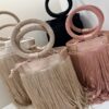 Bolso de estilo Bombonera con forro interior y cierre tipo saquito.