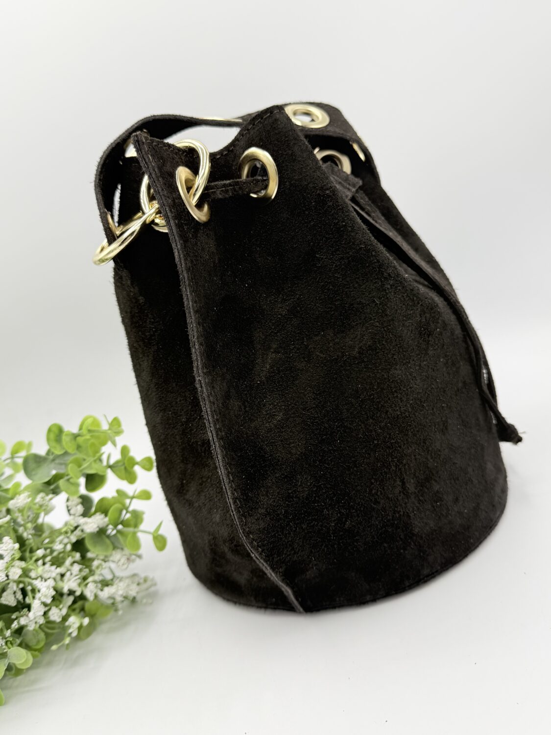 Incluye asa corta con detalle de arandelas doradas y tira larga de serraje a tono regulable de largo.