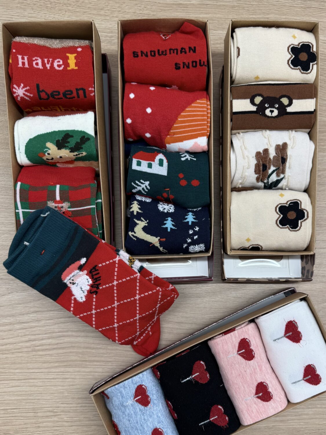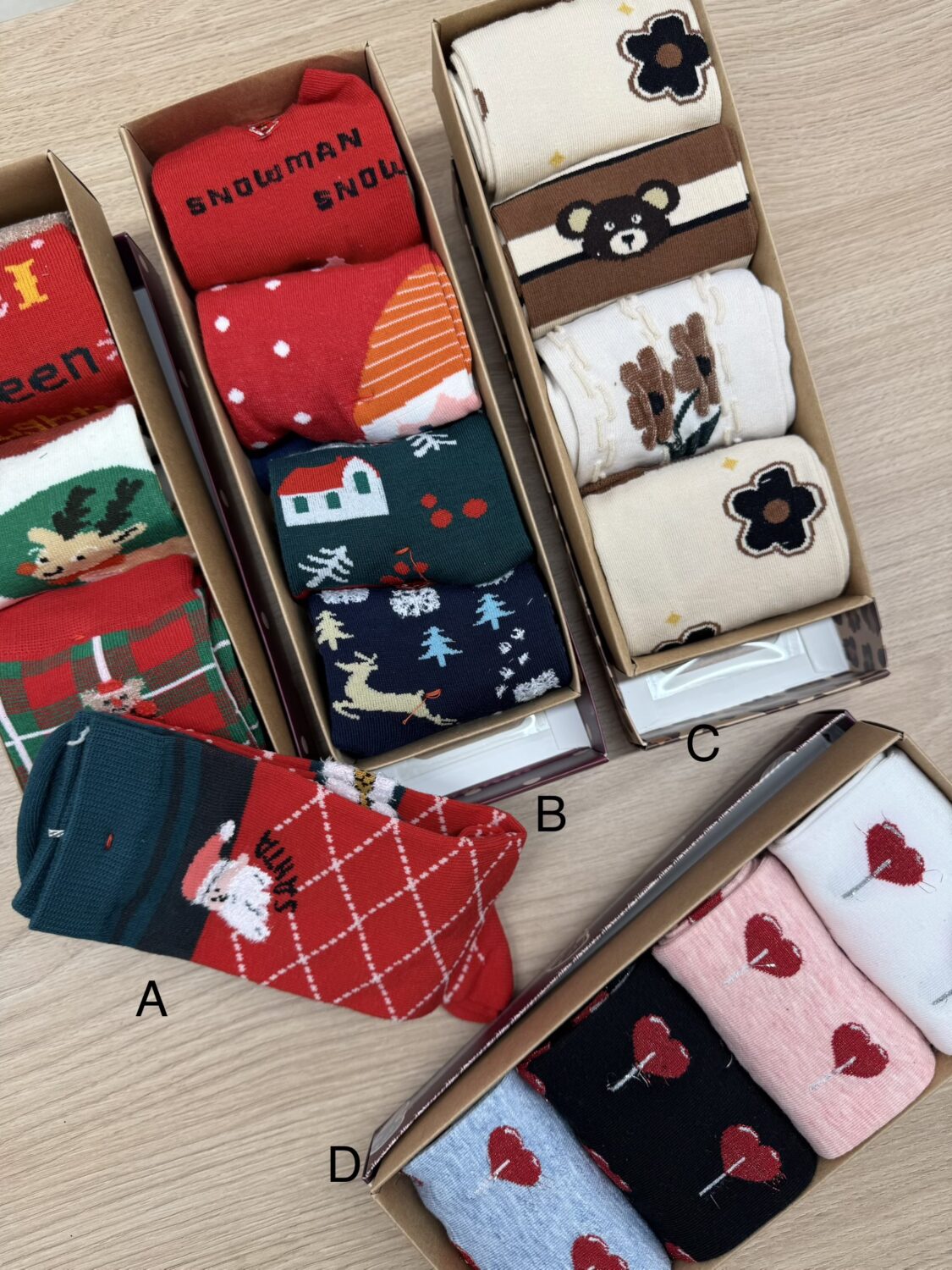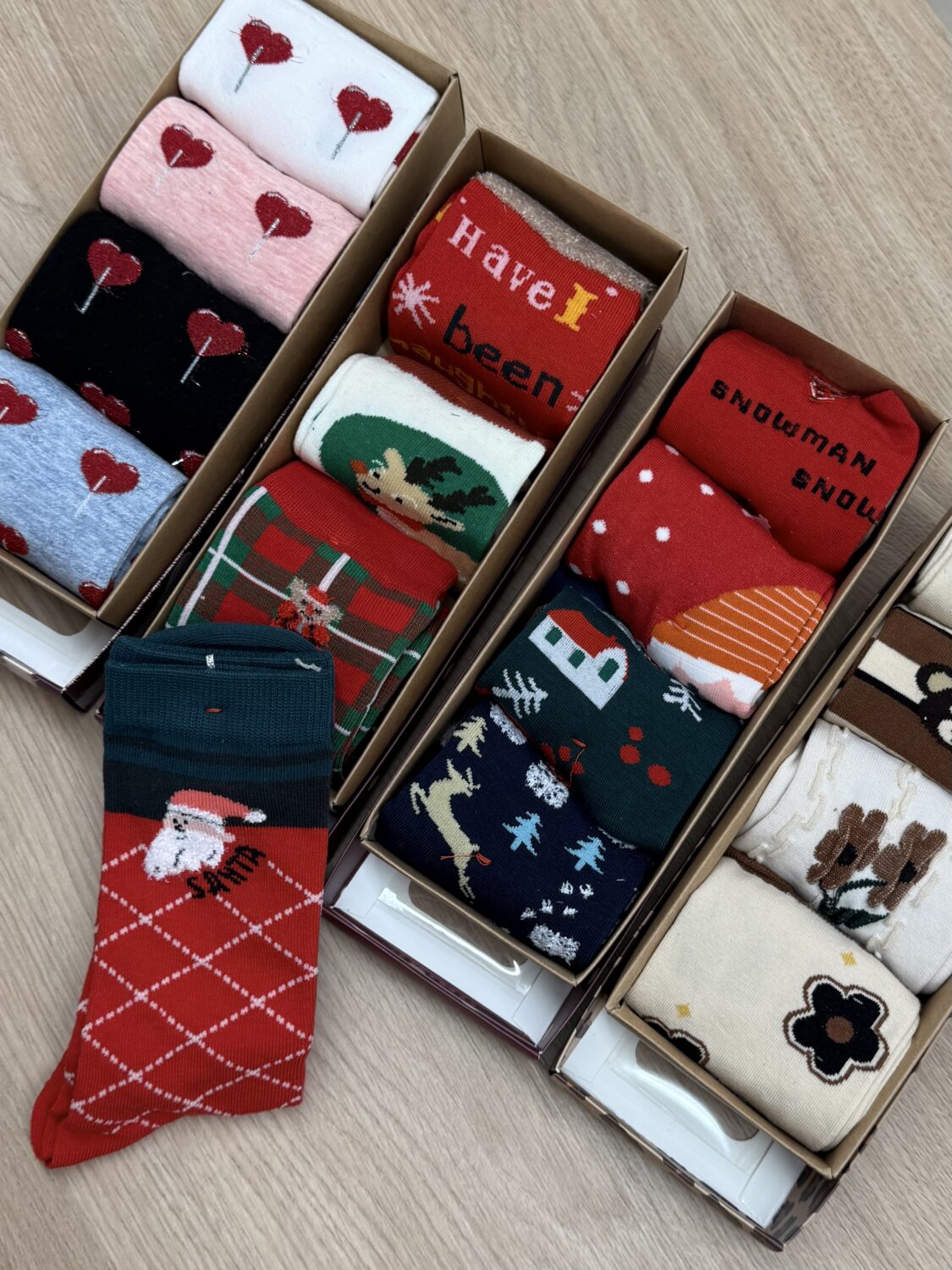 Caja perfecta para regalar con 4 pares de calcetines surtidos..