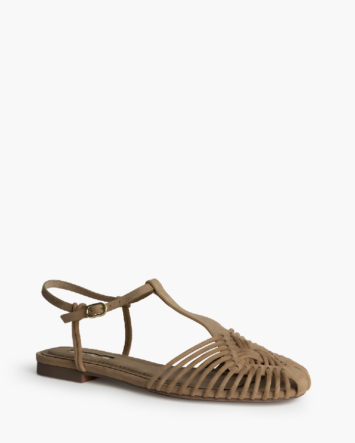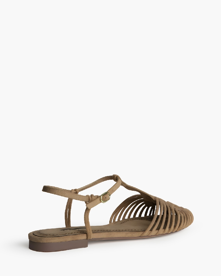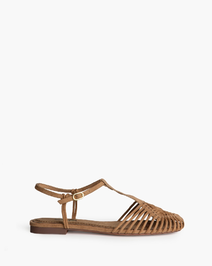 Cangrejera plana Corina en acabado tipo ante color camel