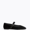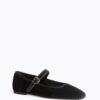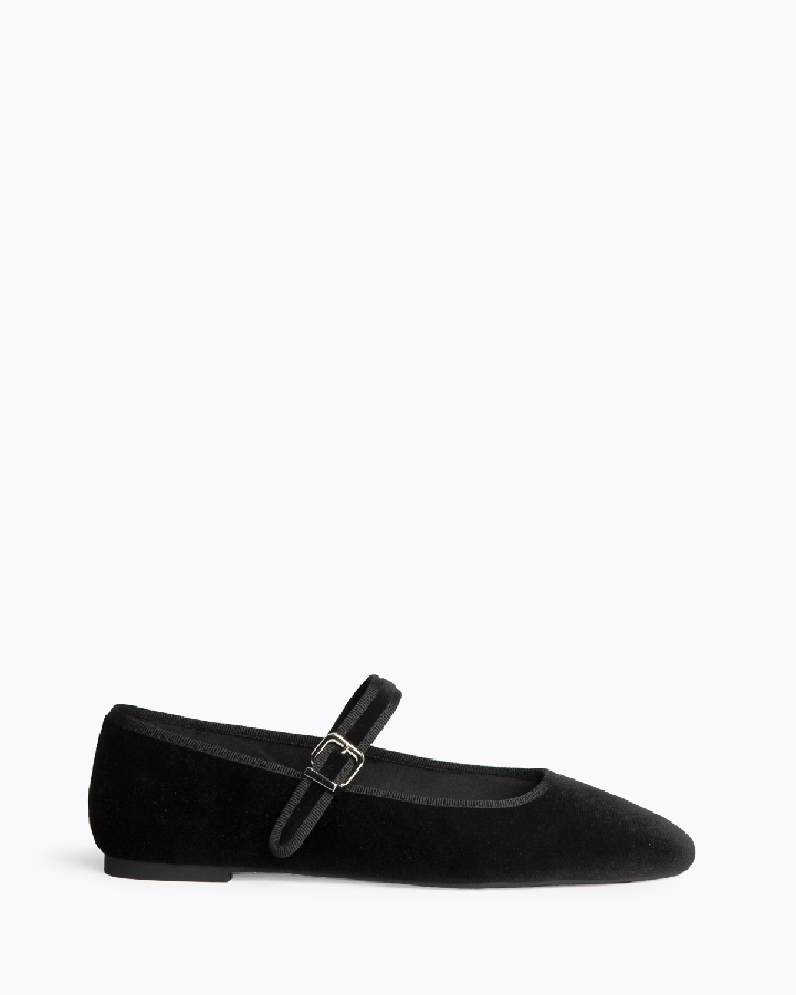 Bailarina de estilo Mary Jane en textil tipo antelina, con ajuste en el empeine mediante tira regulable con hebilla.