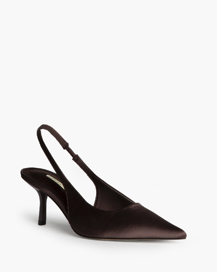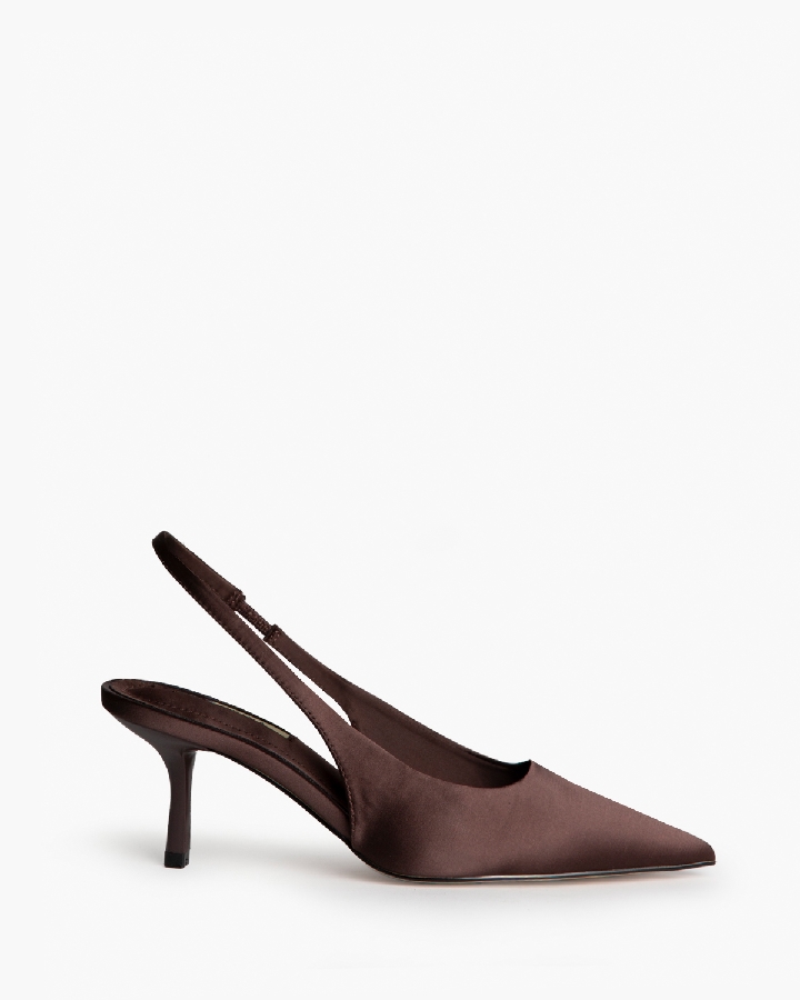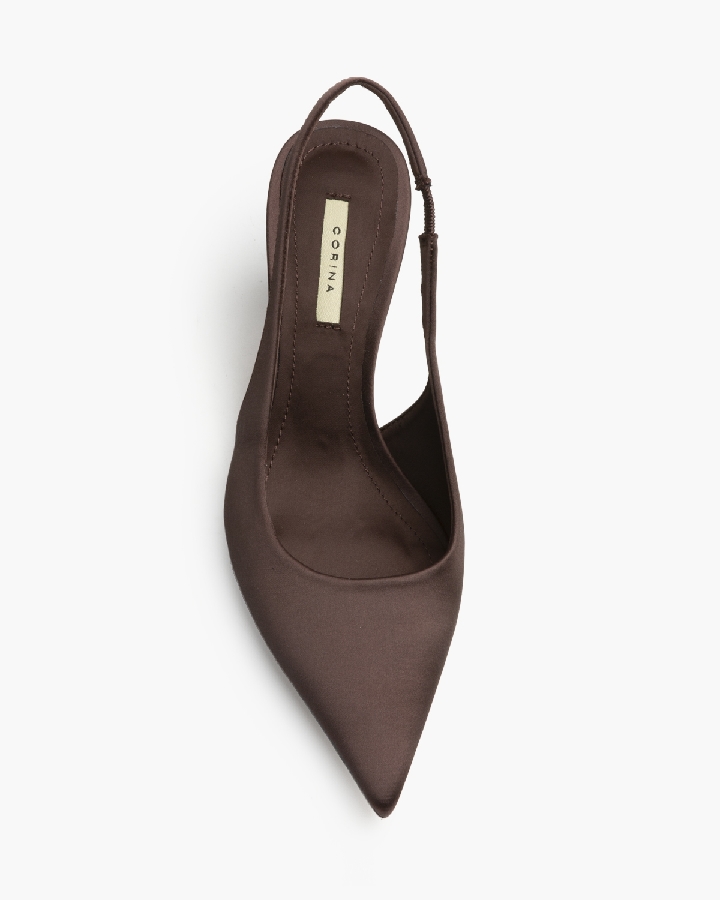 Zapato tipo Stiletto de la Nueva Colección Corina Shoes, en un original tejido efecto neopreno marrón, con tacón fino de unos 7 centímetros.