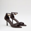 Sandalias con una original terminación en punta, talón cubierto y sujetas al tobillo mediante hebilla regulable.