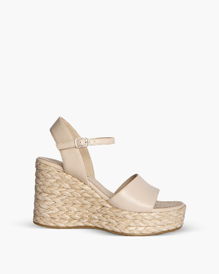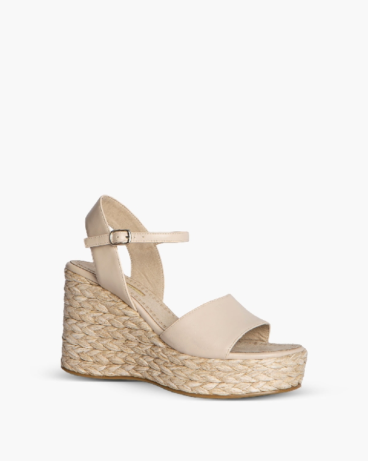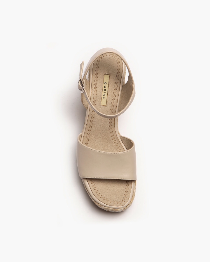 Sandalias de cuña de la colección Corina de polipiel color crudo .