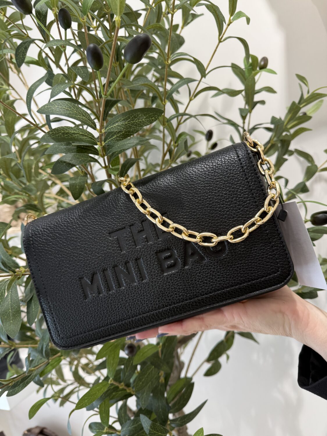Fabricado en material efecto piel con textura, incorpora una cadena dorada que eleva su estilo. Además, incluye una tira larga adicional para llevarlo cómodamente tipo sport, al hombro o cruzado, adaptándose a looks tanto de día como de noche.