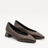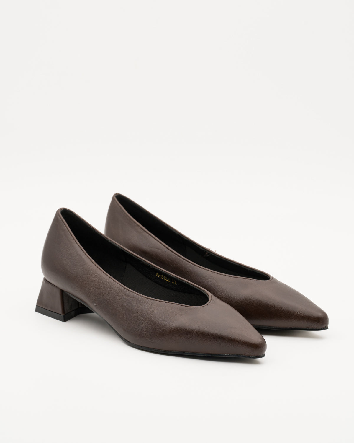 Zapato tipo salón de punta en polipiel marrón chocolate.