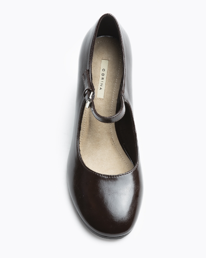 Zapato de estilo Mary Jane de la colección Corina Shoes en color café, sin duda el color tendencia para esta temporada.