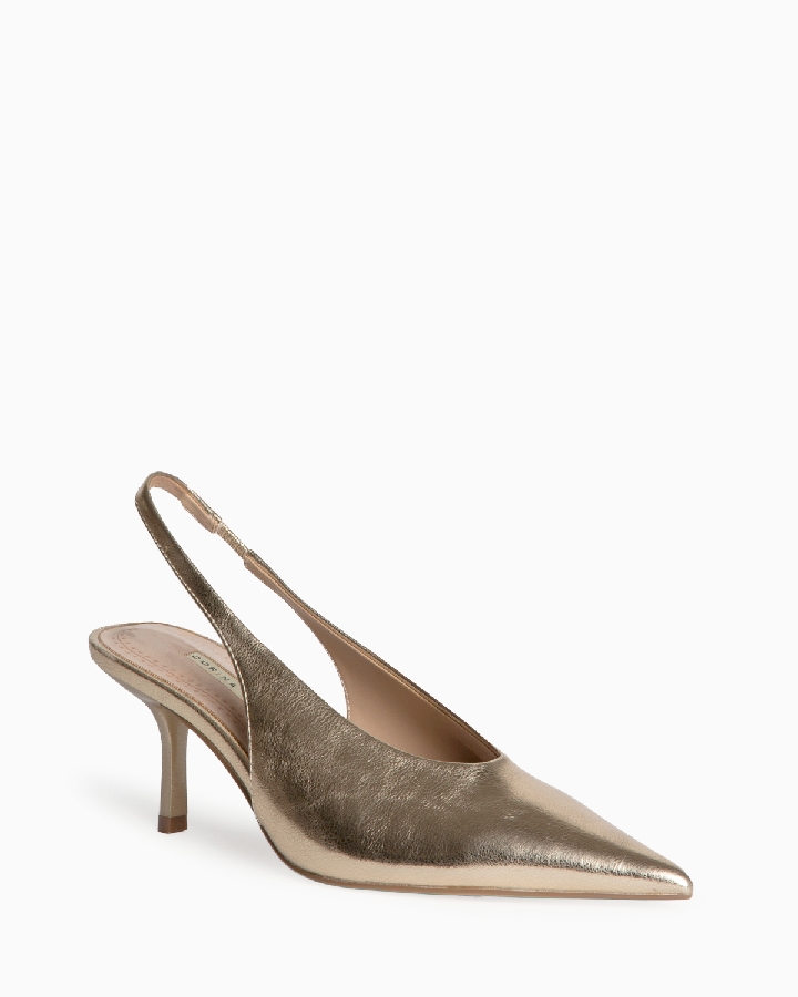 Zapatos de estilo salón en polipiel oro de la nueva colección CorinaShoes perfectos tanto para eventos como para looks más casual .