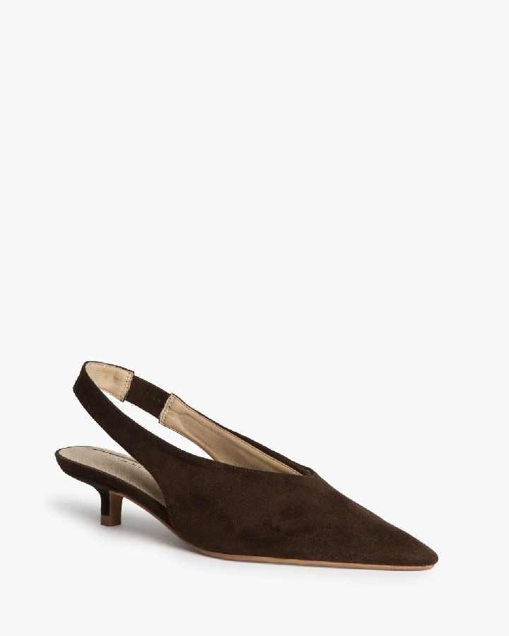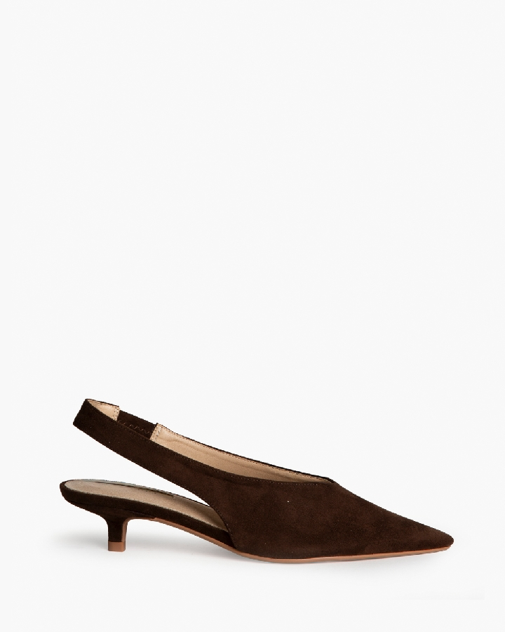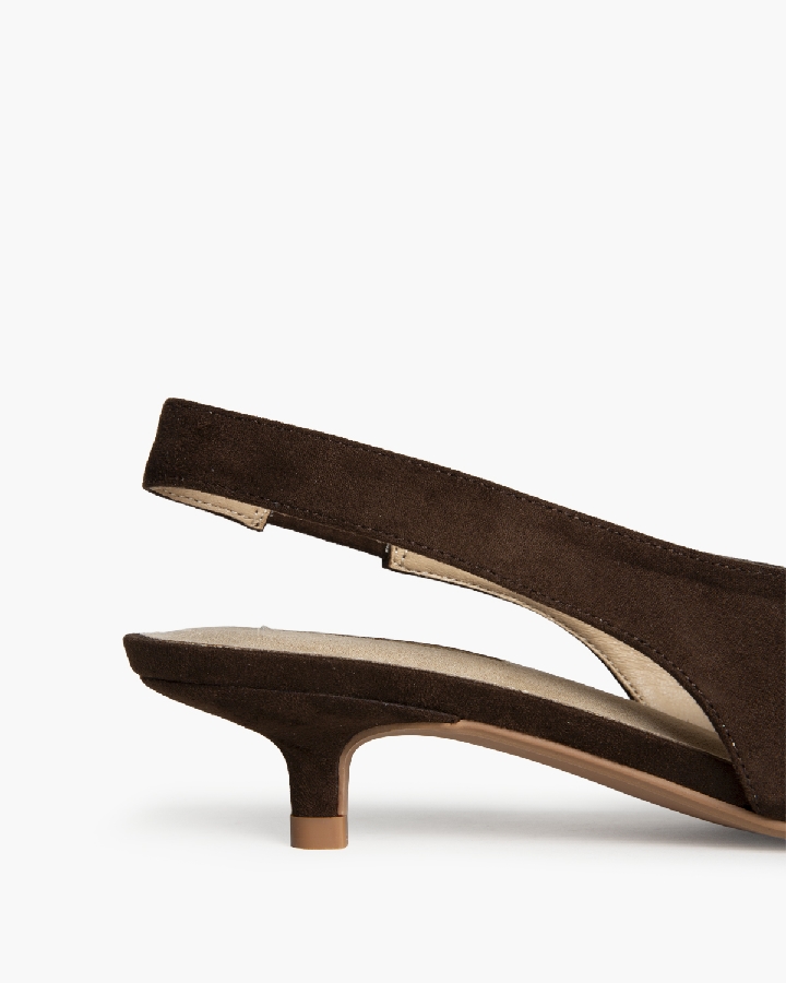 Zapato tipo salón de tacón fino bajo de unos 4 centímetros aproximadamente.