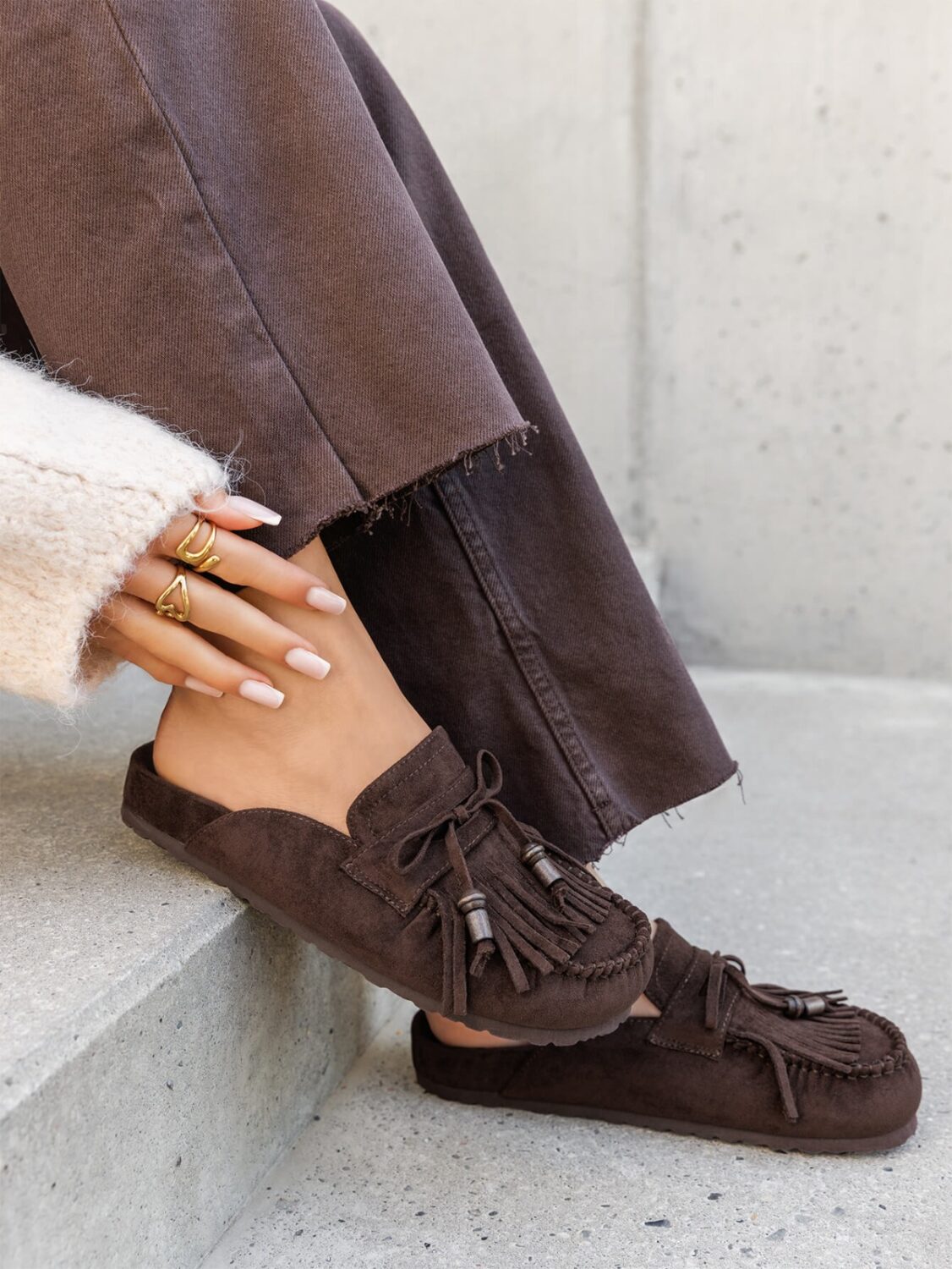 Zueco en textil efecto antelina en el color tendencia para esta temporada.